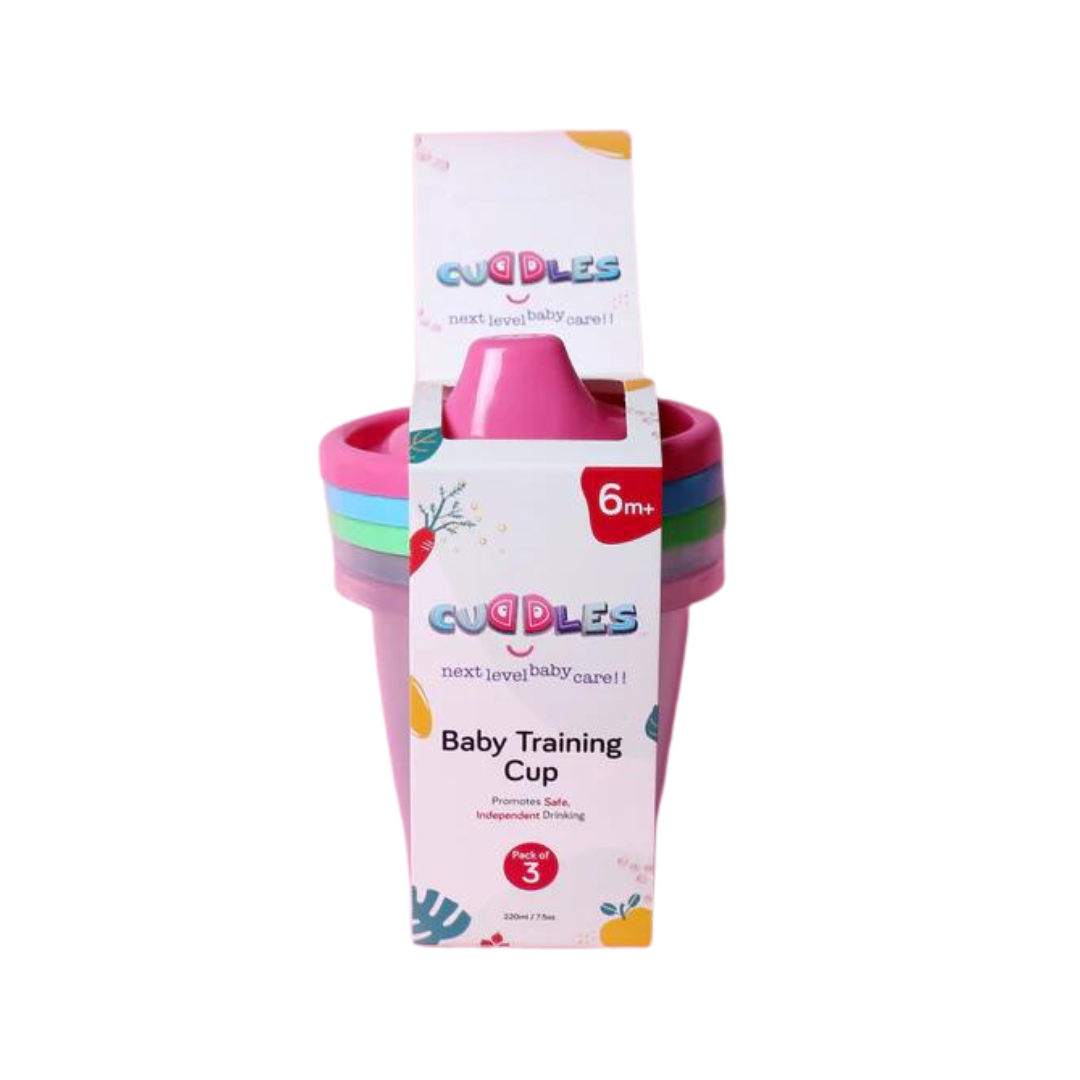 Introduce your little one to independent drinking with the Cuddles Baby Training Cup. Designed for toddlers, this 220ml cup is perfect for easing the transition from bottle to cup. Featuring a spill-proof design and soft, easy-grip handles, the Cuddles Training Cup encourages your child to develop their drinking skills while minimizing mess.