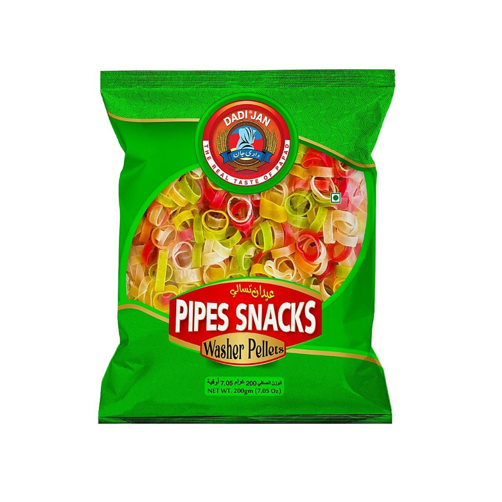 Add a new twist to your snacking routine with Dadi Jan Pipes Snacks Washer Pellets—the perfect crunchy treat!