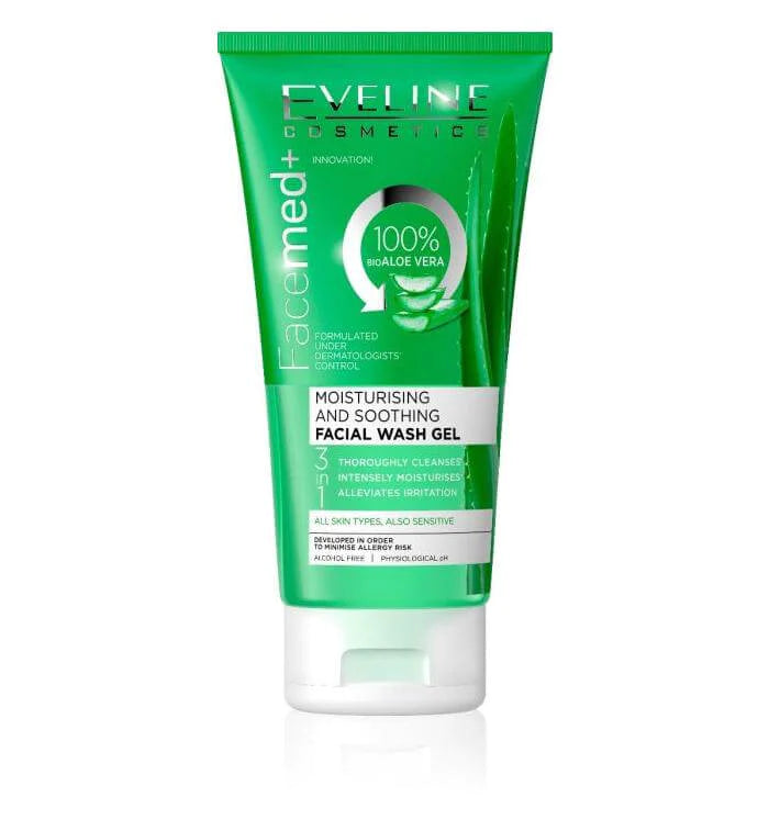 Eveline Facemed Aloe Vera face wash, hydrating face cleanser, gentle aloe vera face wash, Eveline skincare, soothing daily cleanser, face wash for sensitive skin, aloe vera facial cleanser, oil control face wash, natural aloe vera cleanser, refreshing facial wash