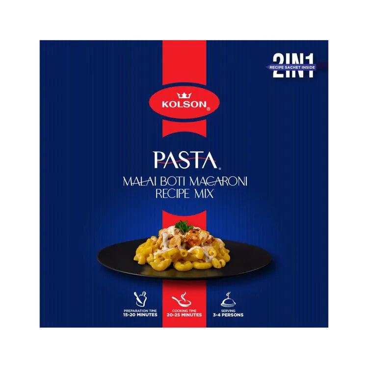 Indulge in the creamy and flavorful taste of Kolson Malai Boti Macaroni — a ready-to-cook pasta mix infused with rich malai boti spices. Perfect for quick meals, this delicious blend brings the authentic taste of Pakistani cuisine to your plate in minutes. Ideal for lunch, dinner, or a special treat for the family.
