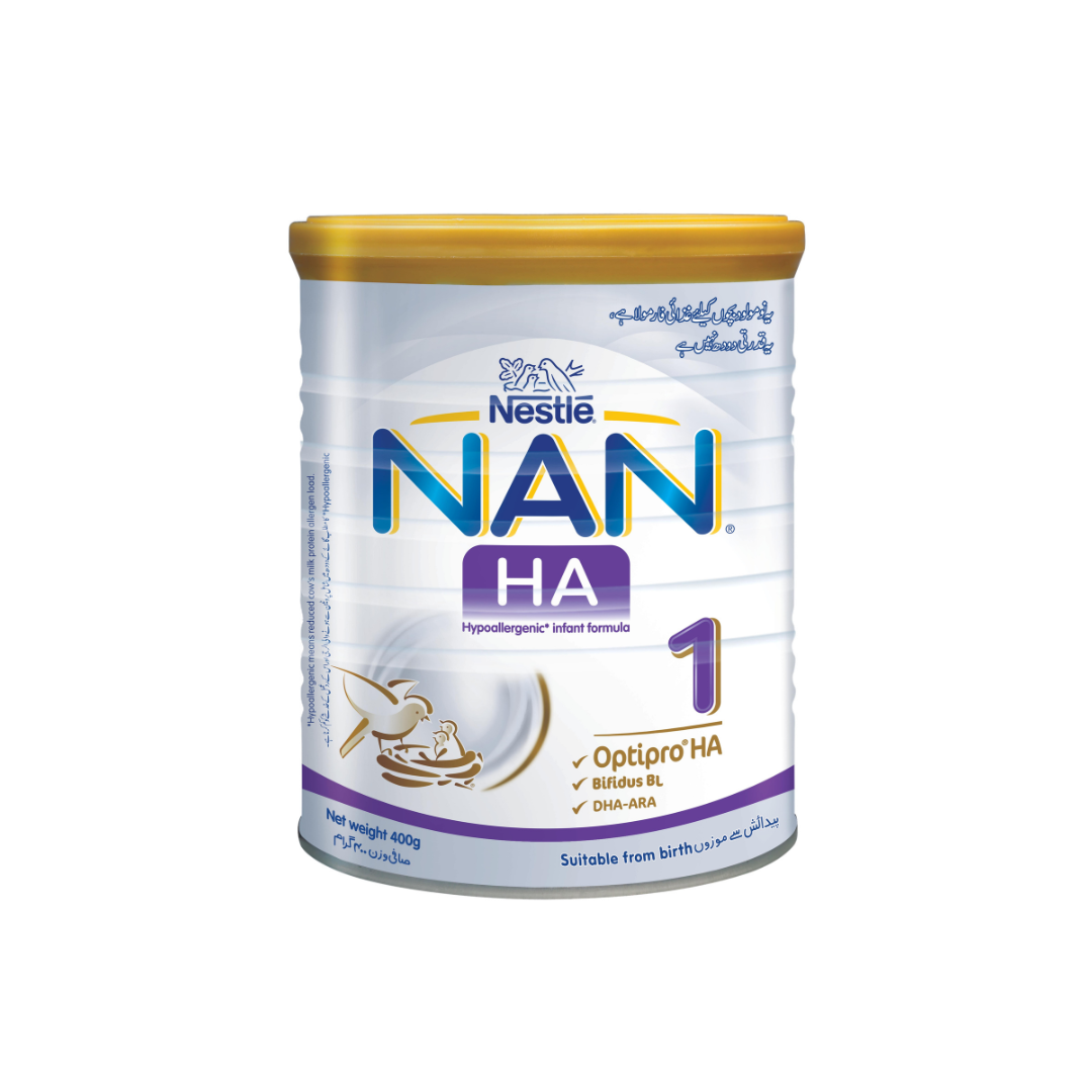 Nestlé NAN AH 400g is a specialized hypoallergenic formula designed for infants at risk of cow’s milk protein allergy (CMPA). This advanced formula contains partially hydrolyzed proteins, making it gentle on your baby’s delicate digestive system while providing essential nutrients for healthy growth and development.