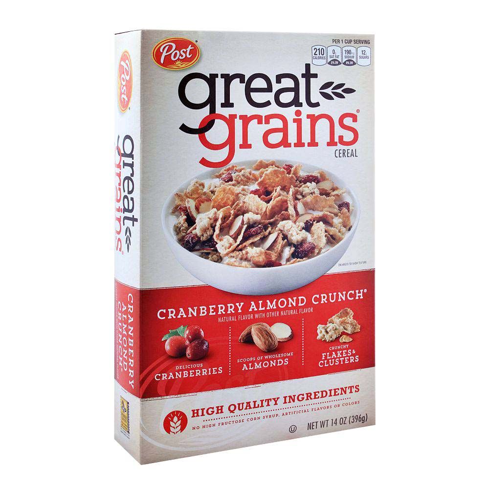 Start your morning with the crunchy goodness of Post Great Cranberry Almond Crunch 396GM β a delicious blend of whole grain cereal, sweet cranberries, and crunchy almonds. Packed with fiber and essential nutrients, this cereal makes breakfast healthy, tasty, and energizing! πΎππ₯