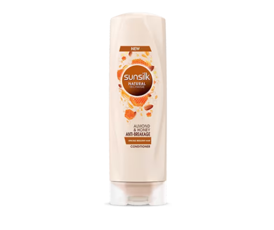 Nourish and soften your hair with Sunsilk Almond & Honey Conditioner (180ml). Enriched with almond oil and honey, this lightweight conditioner deeply hydrates, detangles, and strengthens hair, leaving it smooth, shiny, and manageable. Perfect for daily use, it complements your shampoo routine for healthy, silky hair.