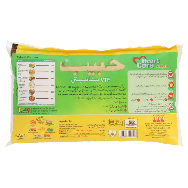 Habib Banaspati Ghee is a premium-quality, flavorful ghee that enhances the taste and texture of your meals. Made from high-quality ingredients, it provides the authentic traditional aroma and rich taste that makes your dishes truly delicious. Perfect for cooking, frying, and baking, this ghee ensures soft, fluffy rotis, crispy parathas, and aromatic curries every time!