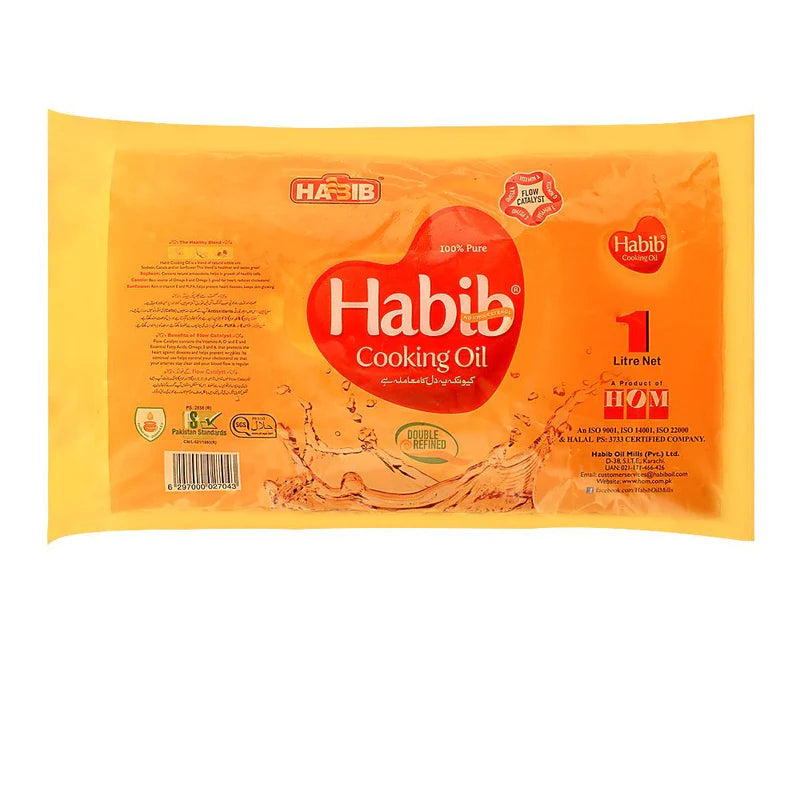 Habib Cooking Oil is a premium-quality, heart-friendly oil that enhances the taste of your favorite dishes while maintaining a healthy lifestyle. Made from refined, cholesterol-free ingredients, it is enriched with essential vitamins (A, D & E) to support overall well-being. Perfect for frying, sautéing, and everyday cooking, this oil ensures crispy, delicious, and nutritious meals for your family.