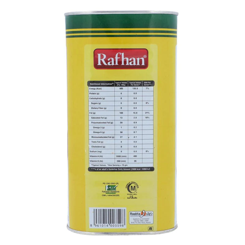 Rafhan Corn Oil is a 100% pure corn oil known for its light texture and high nutritional value. It is rich in polyunsaturated fats and low in saturated fats, making it a heart-friendly cooking oil. Rafhan Corn Oil contains Omega-6 fatty acids and Vitamin E, which help maintain cholesterol levels and promote overall health.