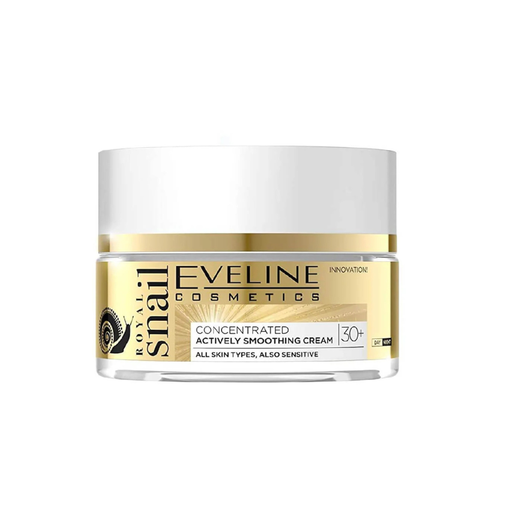 Eveline Royal Snail cream, snail smoothing cream, anti-aging snail cream, Eveline skincare, hydrating snail face cream, wrinkle reduction cream, snail filtrate face cream, nourishing facial cream, Eveline anti-wrinkle cream, radiant skin moisturizer