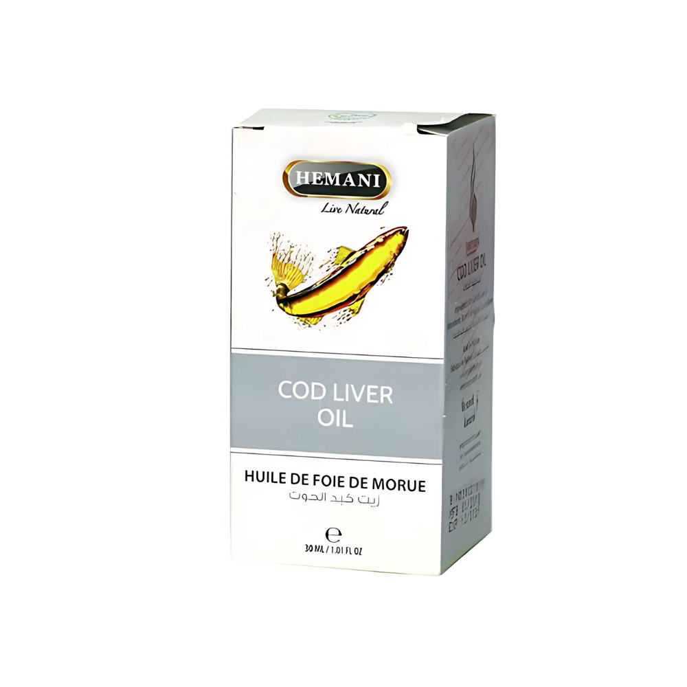 Boost your health naturally with Hemani Cod Liver Oil 30ML. Extracted from premium quality cod liver, this oil is rich in Omega-3 fatty acids, Vitamin A, and Vitamin D – essential nutrients that support immunity, improve vision, strengthen bones, and promote heart health. Its compact 30ML size makes it convenient for daily wellness and easy to carry.