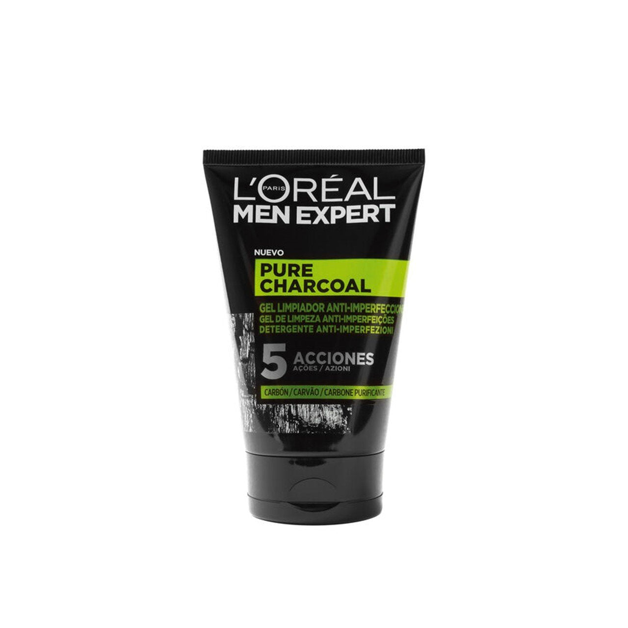L'OrΓ©al Men Expert Pure Charcoal Face Wash 100ml, Daily Purifying Face Wash for Men, Oil Control Charcoal Cleanser, Anti-Blackhead Face Wash Men
