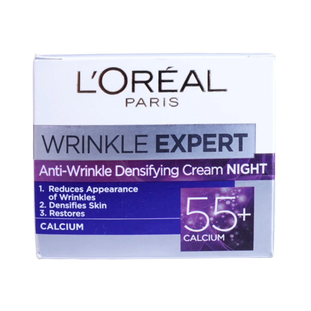 L’Oréal Wrinkle Expert 55+ night cream, calcium anti-aging night cream, L’Oréal night cream for mature skin, wrinkle repair cream 55+, Pro-Retinol moisturizer, best night cream for women 55+, mature skin firming cream, wrinkle expert Pakistan, L’Oréal Paris calcium cream, anti-wrinkle overnight cream