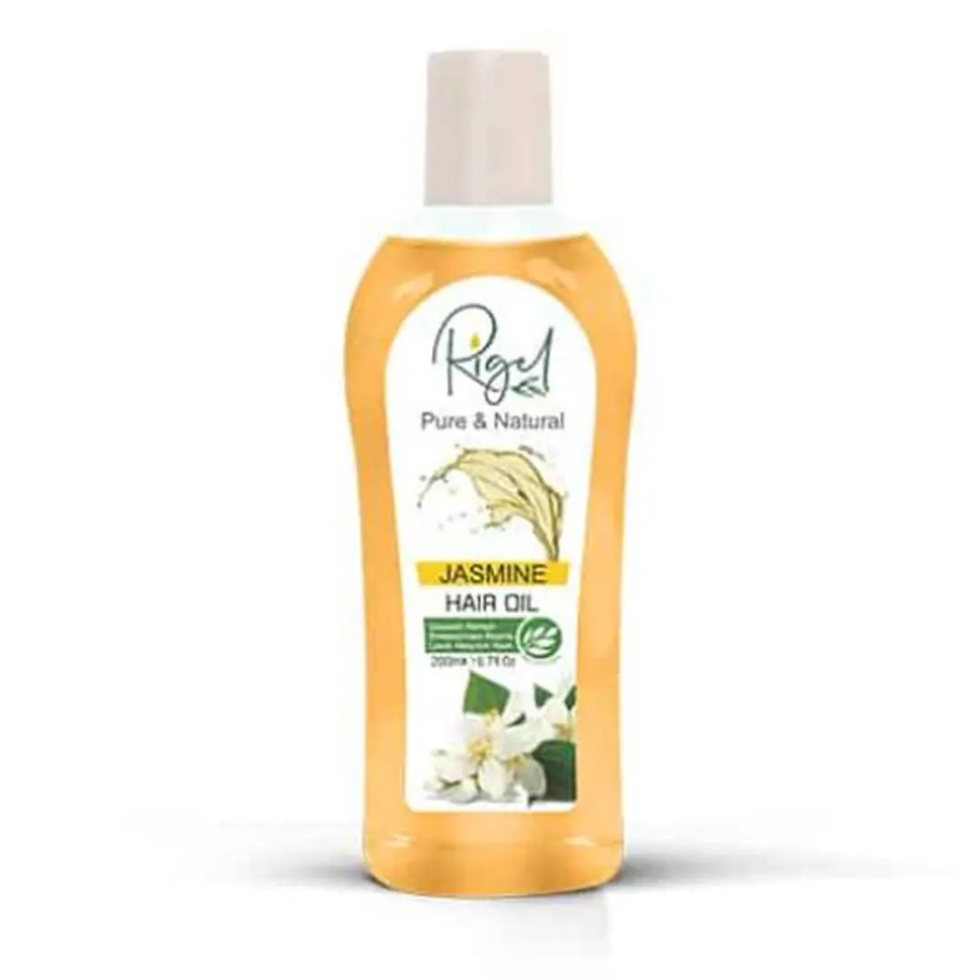 Pamper your hair with the refreshing fragrance and nourishment of Rigel Hair Oil Jasmine 200ML. Enriched with natural jasmine extract, this lightweight and non-sticky oil strengthens roots, reduces hair fall, and adds a natural shine to your hair. It deeply nourishes the scalp, controls dryness, and leaves your hair soft, silky, and beautifully scented all day long. Perfect for daily use.