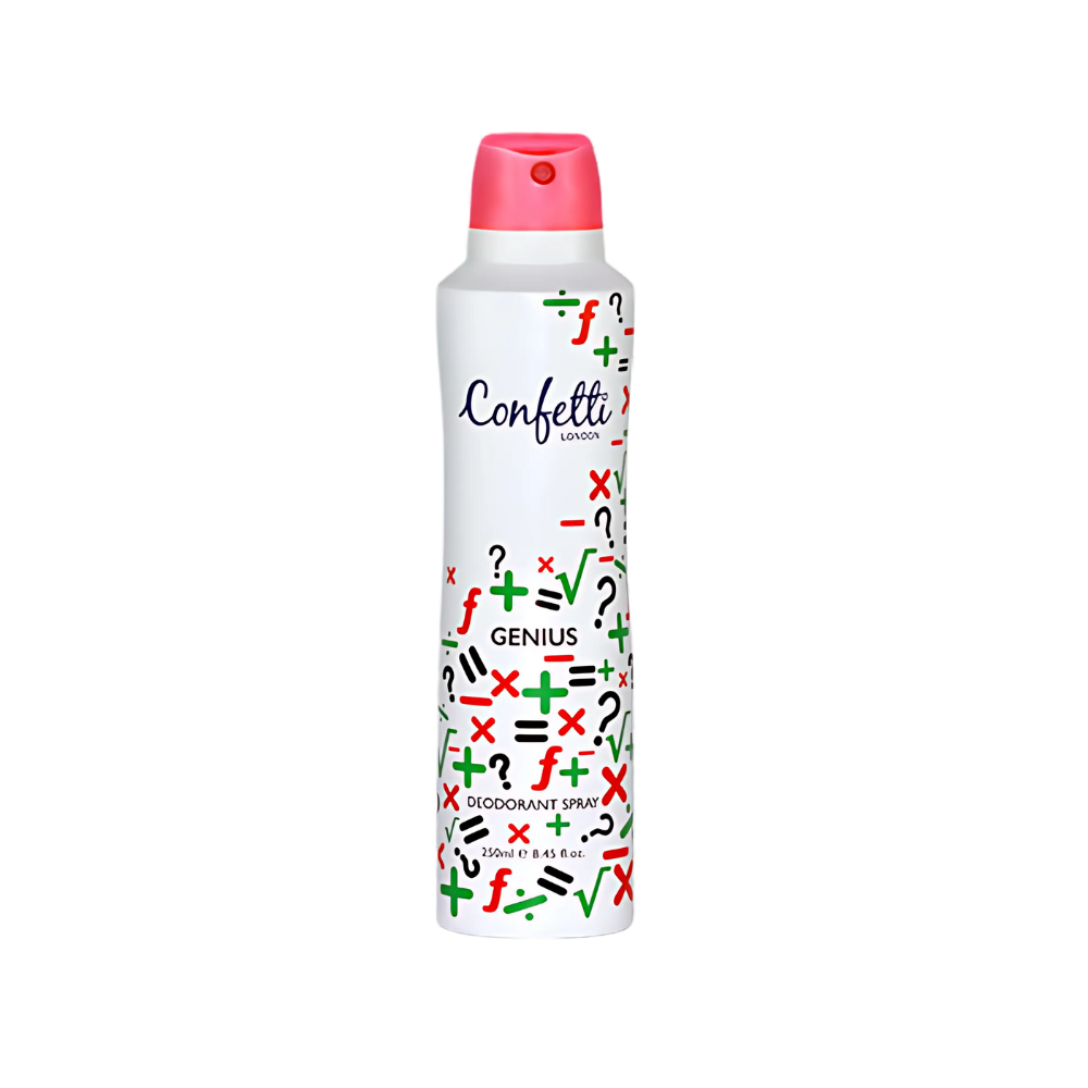 Elevate your fragrance collection with Confetti Body Spray Genius. This dynamic 250ml body spray features a fresh and invigorating scent that inspires creativity and confidence. Perfect for the bold and ambitious, this fragrance combines lively notes to leave you feeling energized and ready to take on the world. Ideal for everyday wear or special occasions, Confetti Body Spray Genius ensures you always make a memorable impression.