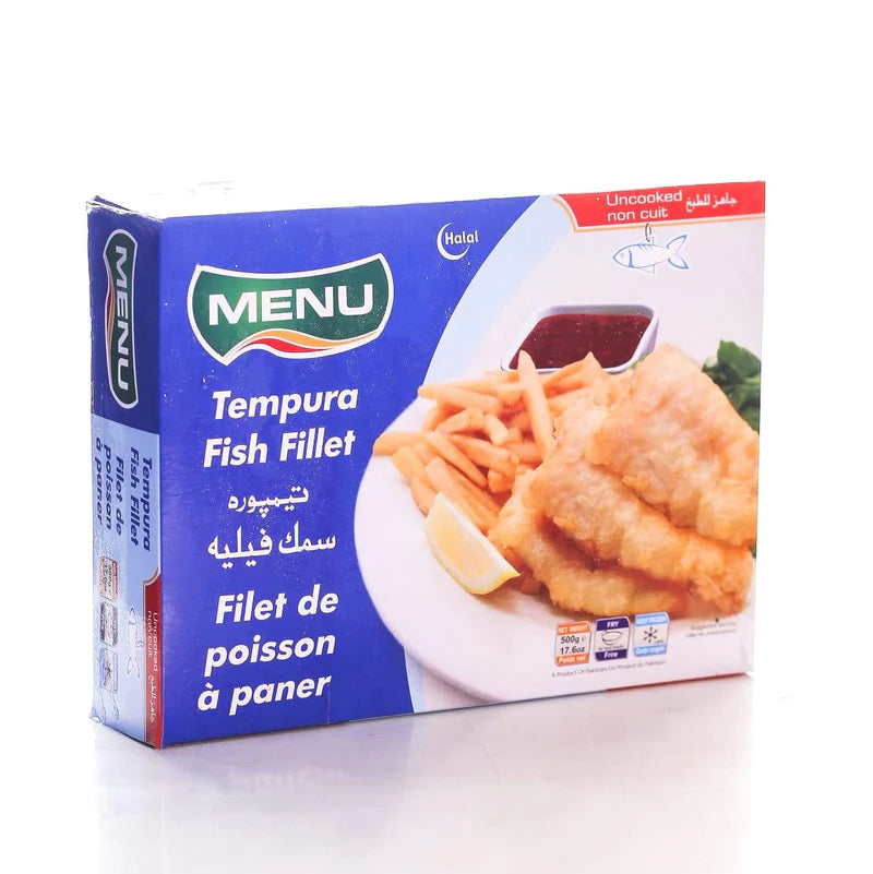 Menu Tempura Fish Fillet 500g, Tempura Fish Pakistan, Frozen Fish Fillet, Ready to Cook Seafood, Crispy Fish Snacks, Menu Foods Pakistan, Japanese Tempura Fish, Air Fry Fish Fillet, Quick Meal Option, Frozen Seafood Delight