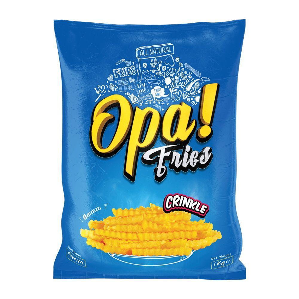 OPA Fries Crinkle 1KG — perfectly crispy, golden, and delicious crinkle-cut fries! Yeh fries har bite mein mazedar crunch aur fluffy texture deti hain. Ideal for home snacks, burgers ke saath ya family meals ke liye.