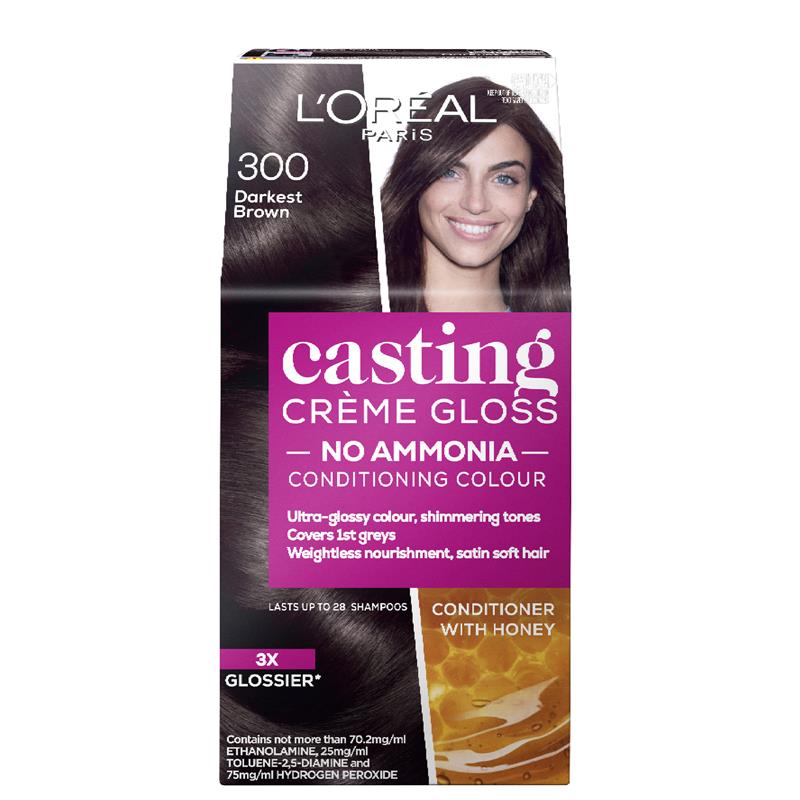 Get rich, glossy, and natural-looking color with L’Oréal Paris Casting Crème Gloss 300 Darkest Brown — a no-ammonia formula that adds shine, softness, and dimension to your hair.