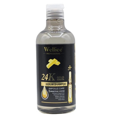 Wellice Serum Shampoo 24K Gold Keratin – ایک luxurious hair care formula جو بالوں کو گہرائی سے nourish, strengthen اور smooth کرتا ہے۔ اس میں موجود 24K Gold extracts اور Keratin serum damaged, frizzy اور weak hair کو repair کرتا ہے، بالوں کو silky smooth, shiny اور manageable بناتا ہے۔