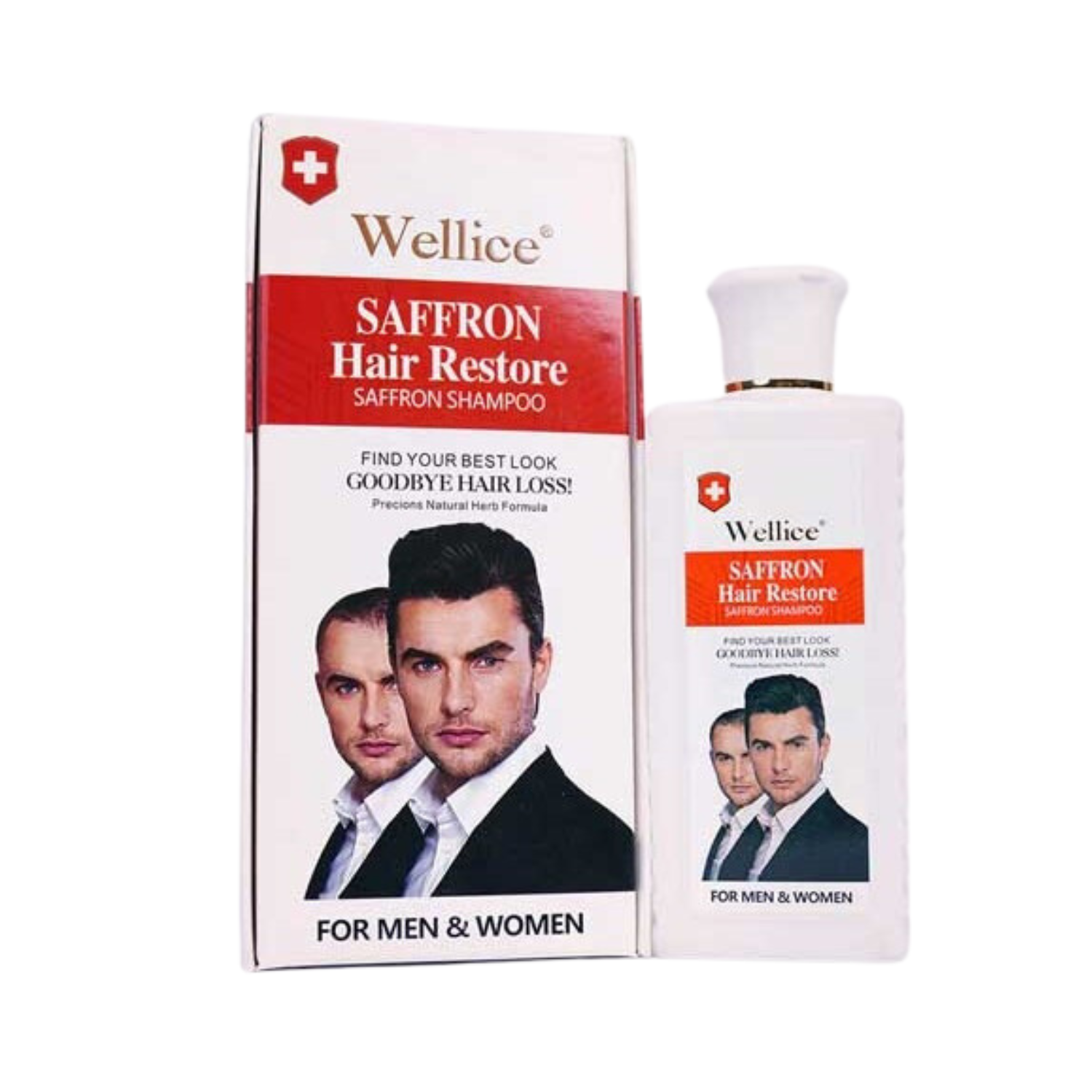 Wellice Hair Restore Saffron Shampoo 260g – بالوں کو صحت مند اور مضبوط بنانے کے لیے قدرتی زعفران (Saffron) سے تیار کیا گیا شیمپو۔ یہ شیمپو بالوں کے جھڑنے کو کم کرتا ہے، جڑوں کو مضبوط بناتا ہے اور بالوں میں قدرتی چمک بحال کرتا ہے۔ اس کا gentle yet effective فارمولا بالوں کو صاف، تازہ اور نرم و ملائم رکھتا ہے۔