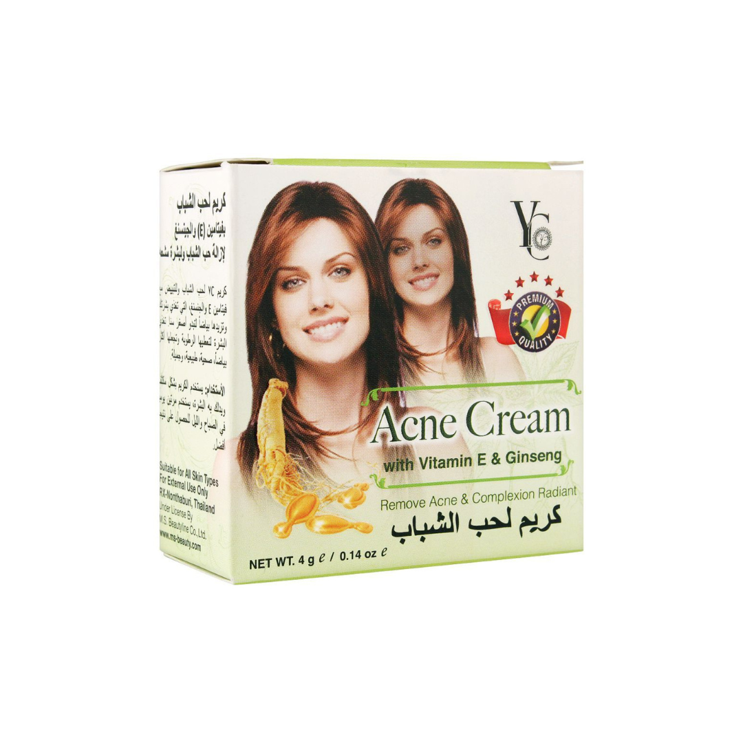 YC Acne Cream Vitamin‑C Plus 4g, vitamin C acne spot cream, Thai acne treatment, brightening acne cream, dark spot corrector cream, ginseng vitamin E acne cream, compact travel acne cream, antioxidant acne treatment