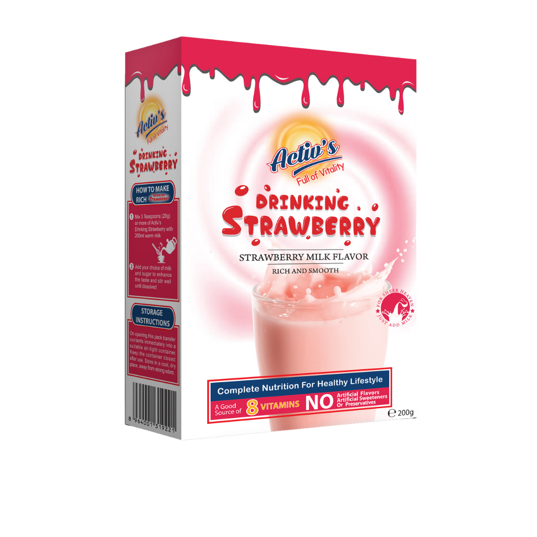 Experience the delightful taste of Activs Drinking Strawberry (200g) – the perfect choice for a refreshing and flavorful drink that satisfies your sweet cravings.
