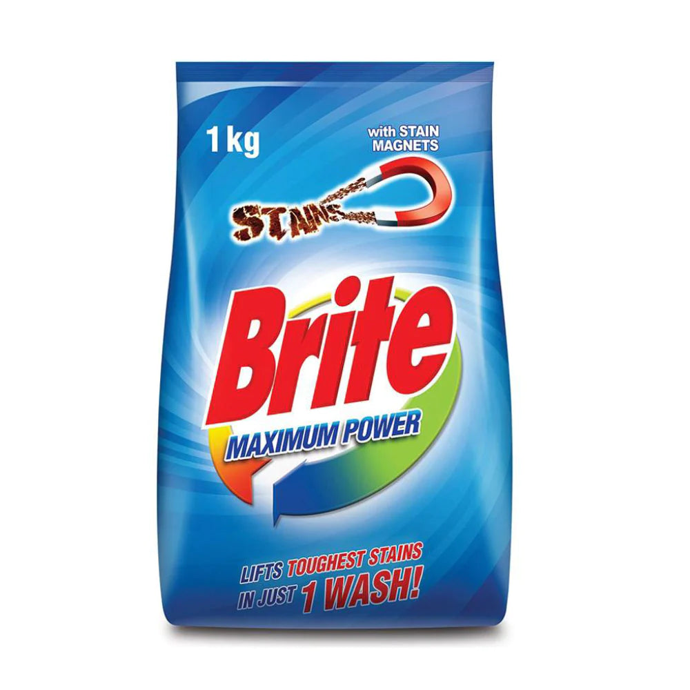 Experience powerful cleaning with BRITE Detergent Powder Maximum Power. Formulated to tackle tough stains, this detergent ensures your clothes stay bright and fresh after every wash. Its maximum power cleaning formula penetrates deep into fabric fibers, removing dirt and grime while preserving the vibrancy of your clothes. Ideal for both machine and hand washing, BRITE Detergent Powder leaves your laundry smelling fresh and looking spotless.